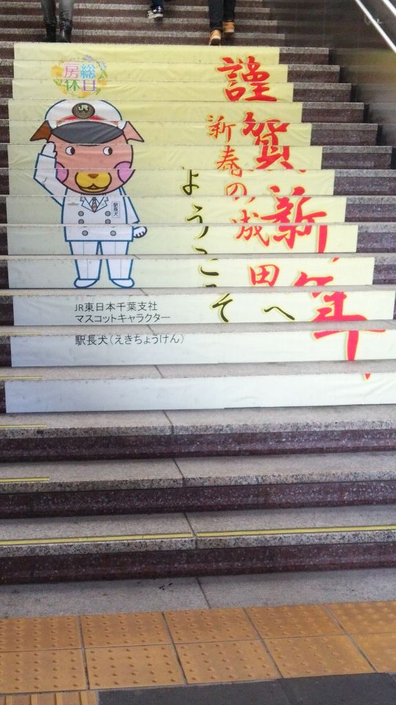 _ 勝浦と言えば春先の雛祭りが有名だが、ホームの柱にも。