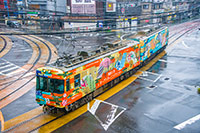 ビックフロントひろしま(東棟)駐車場10F(西エレベーター)付近にて撮影の5200形車両による上り電車