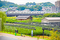 「住宅街の耕作地を走る」