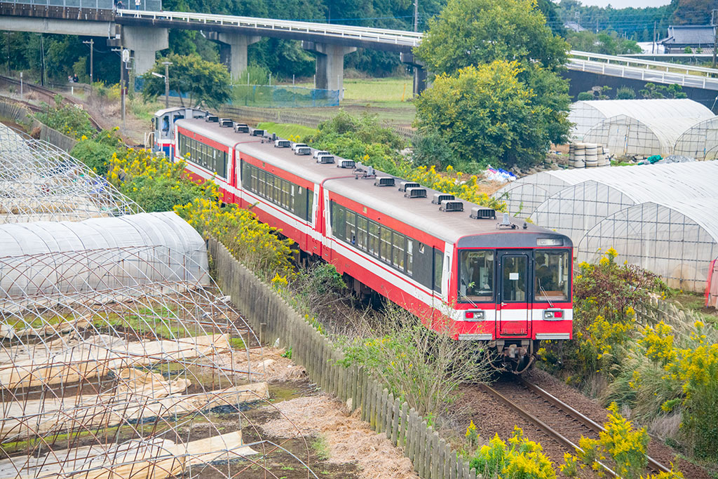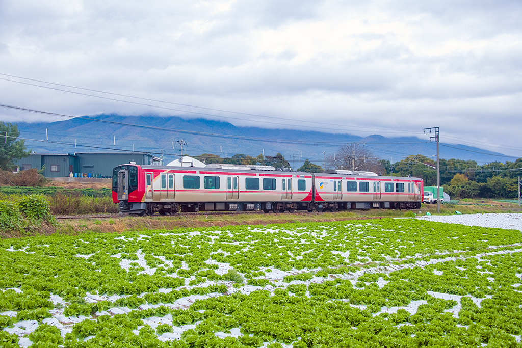 般若寺前踏切付近で撮影の6000系気動車(3両(6011+6016+6013))による団体臨時列車(後追い)