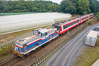 神向寺跨線橋にて撮影のKRD64形1号機牽引6000系気動車(3両(6013+6016+6011))による団体臨時列車(「DL急行『大洗エメラルド号』で行く神栖・奥野谷浜の旅」)