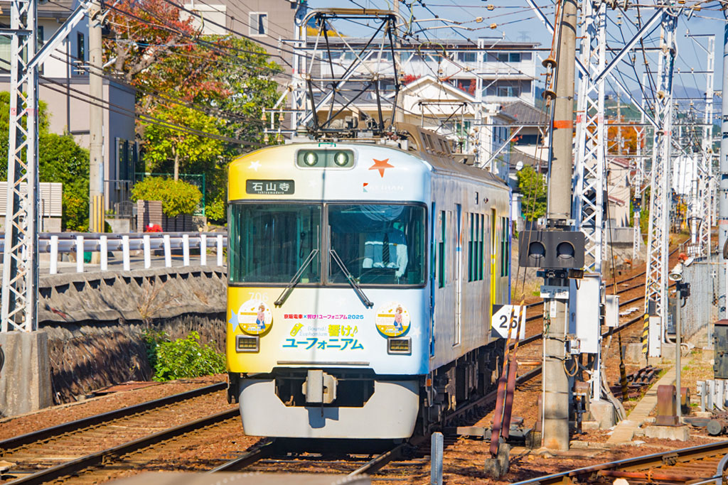 錦織踏切にて撮影の700形車両(705-706号車)による『京阪電車×響け!ユーフォニアム 2025』ラッピング電車(1280)