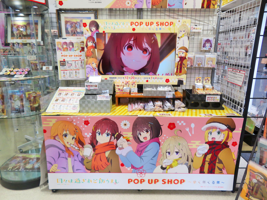 参拝後、秋葉原へ。途中、飯田橋駅で乗り換えることに。4年間通った飯田橋駅。地下鉄からJR線へのルートも頭に入って(身体に染み込んで)いましたが、JR線ホームで乗り場が遠くなったのには(年に数度使っていますが)慣れませんね。遠い〜〜 秋葉原での目的は、けいおんマンさんのレポートで知った秋葉原ホビー天国2で開催中のTVアニメ『日々は過ぎれど飯うまし』POP UP SHOP 〜ゆく年くる年〜(外)の見学。けいおんマンさんへ、情報ありがとうございました。ますは、パネルの撮影。ここは人通りが多い(秒速1〜3人通過する)場所。何とか人波が切れたタイミングで撮影することができました。大通りの信号が近くて助かりました。POP UP SHOPを見ましたが、(すみません)特に購入することなく転進。