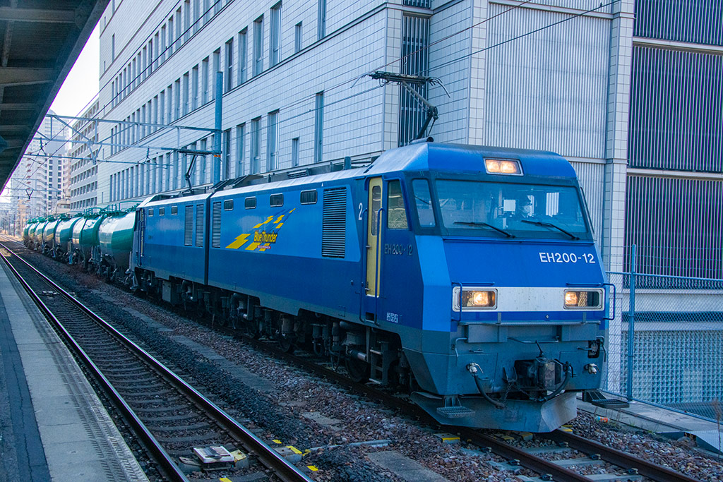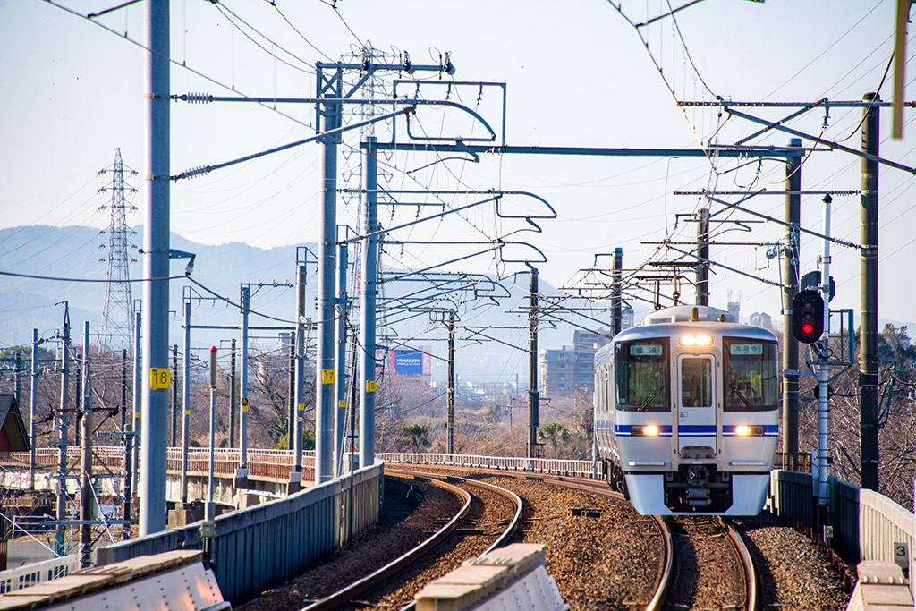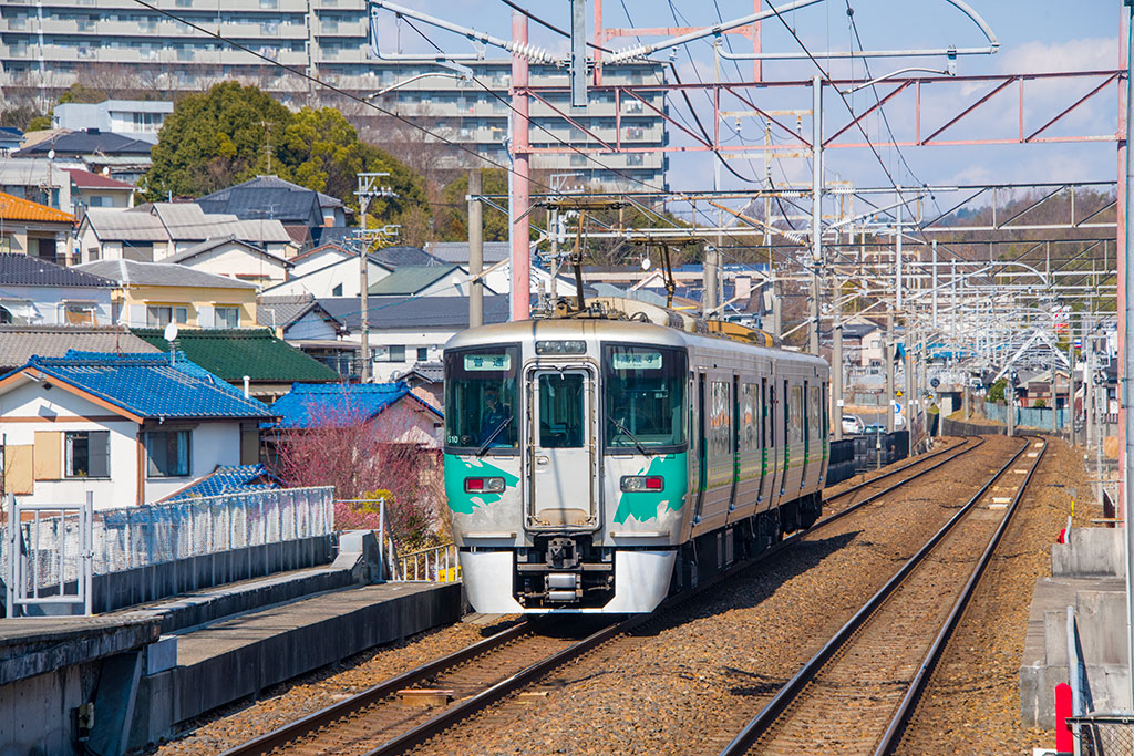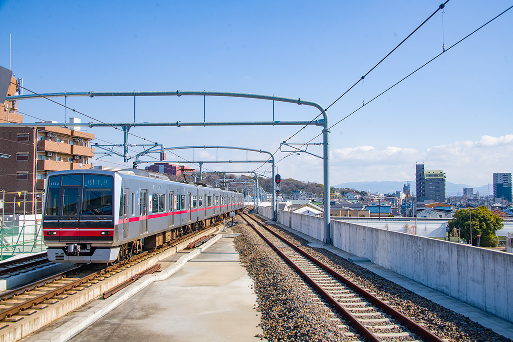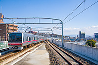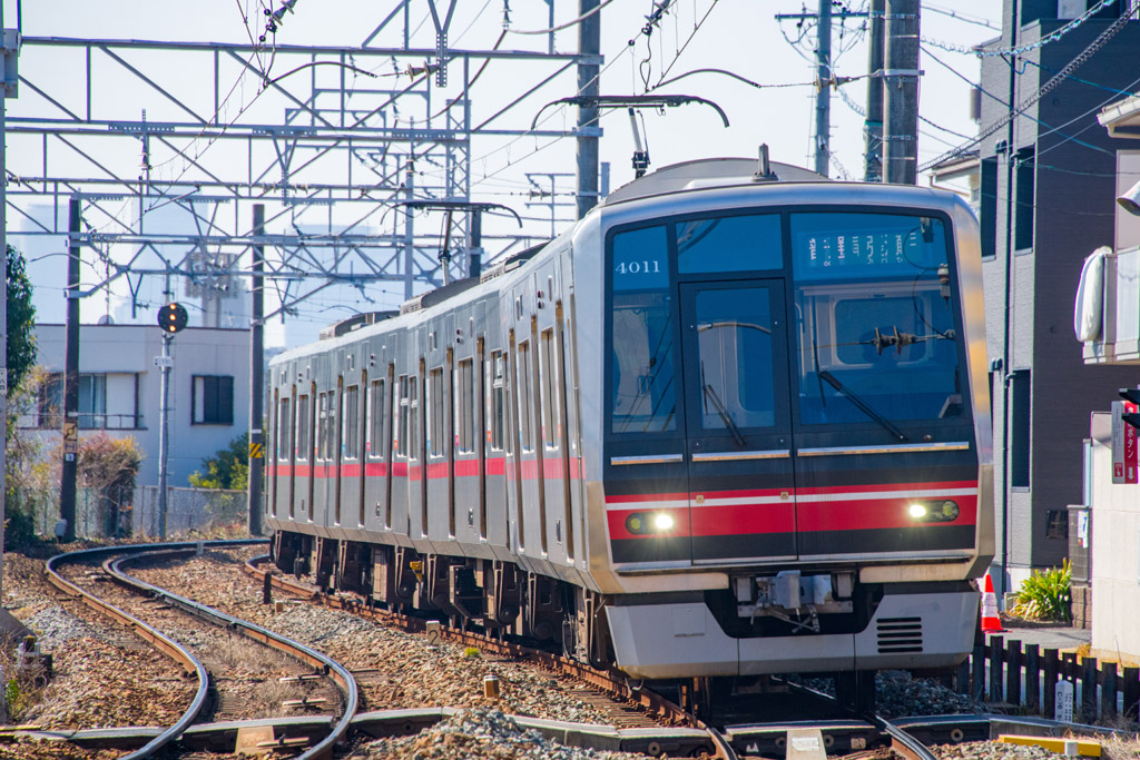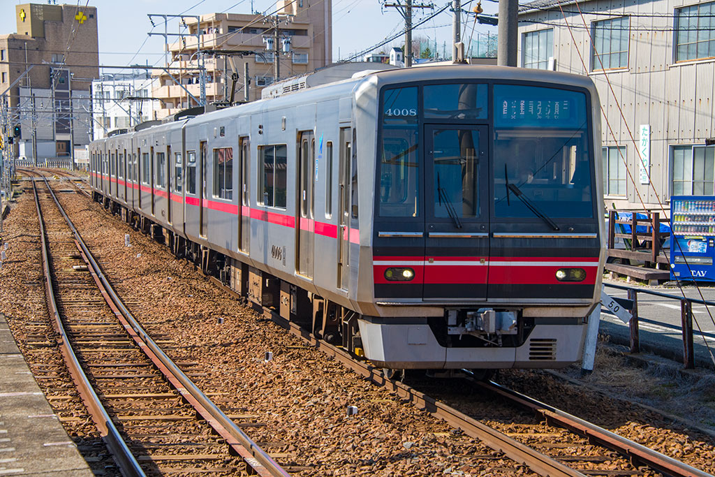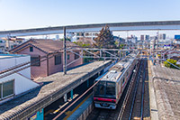 同駅構内跨線橋にて4000系(4006F)車両による上り普通電車(1150)