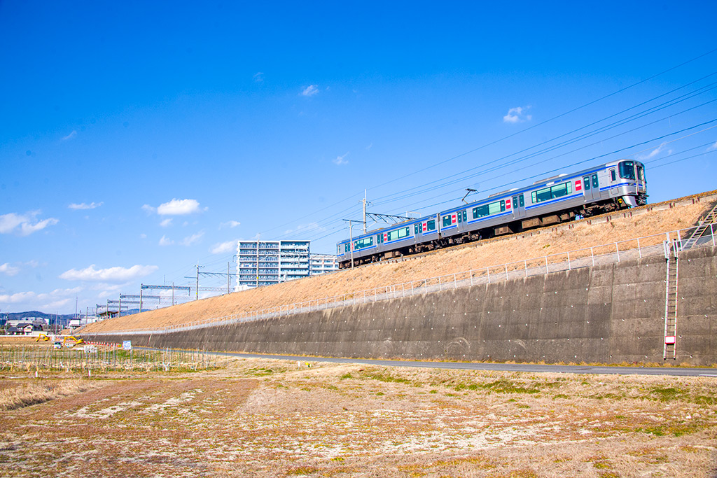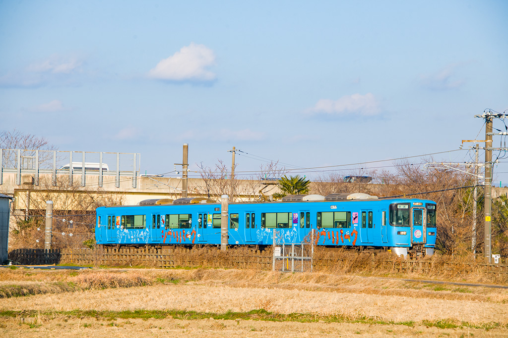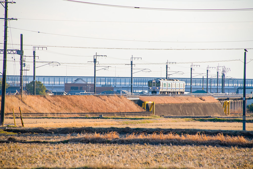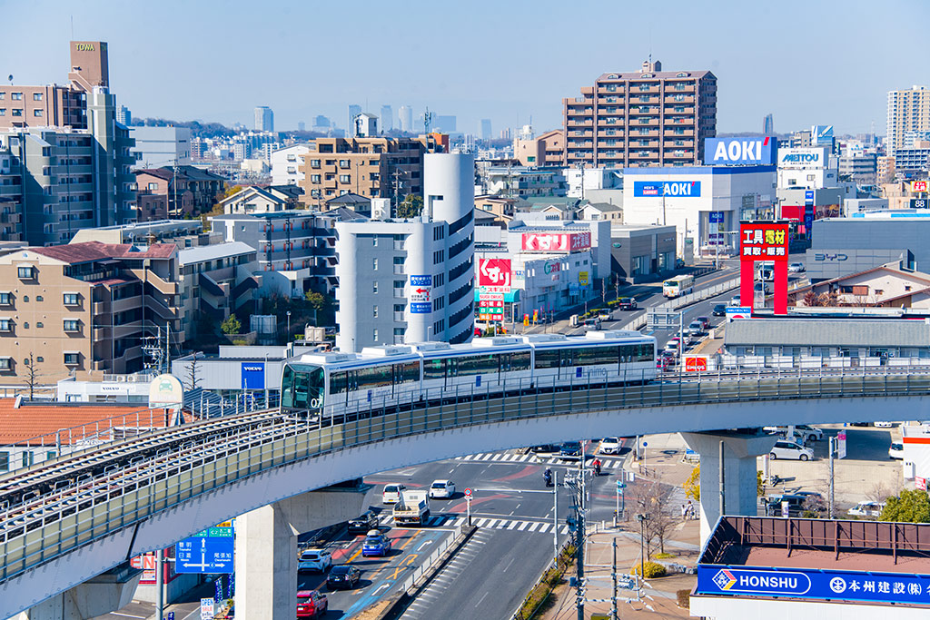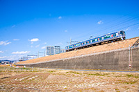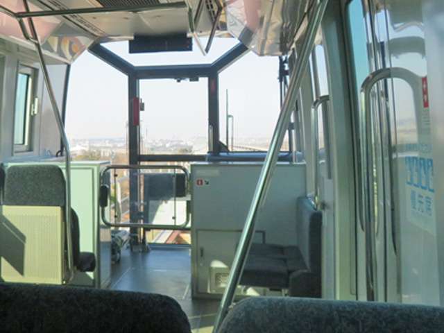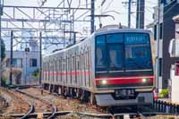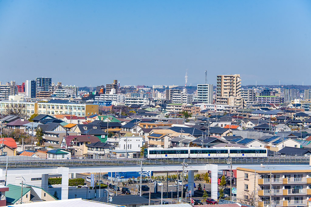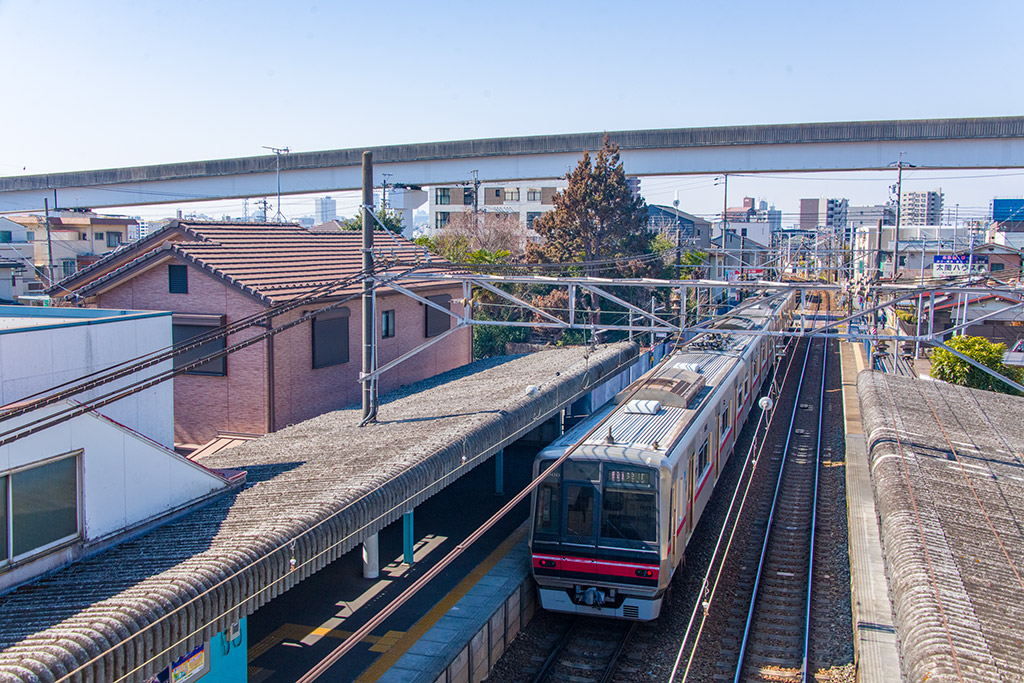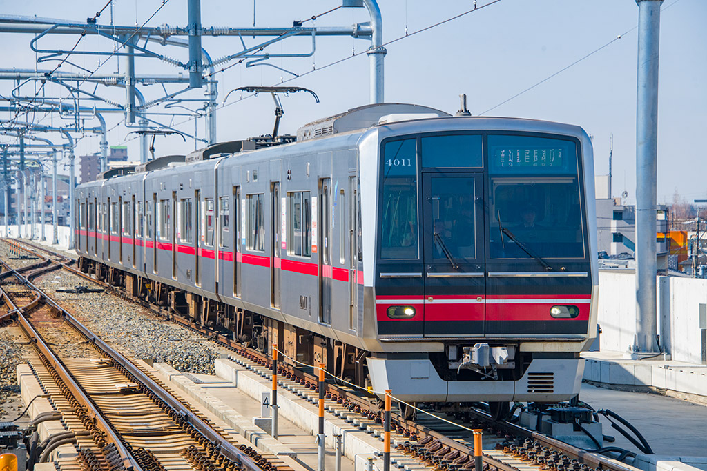 スカイワードあさひ9階展望室にて撮影の4000系(4015F)車両による上り普通電車(1158)