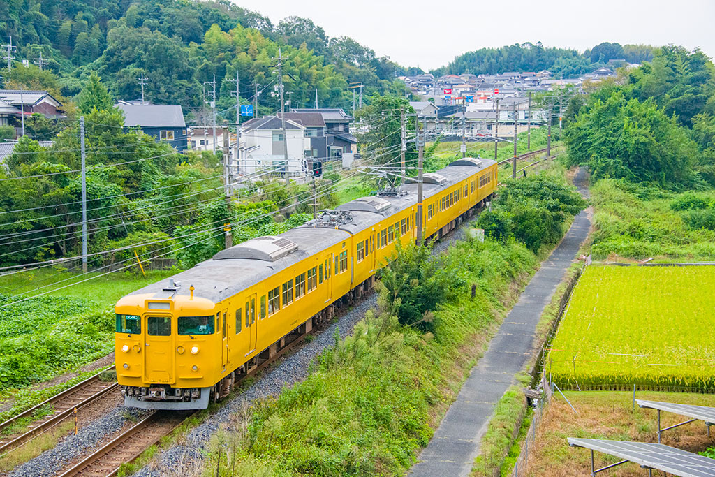 水田を走るクモハ123