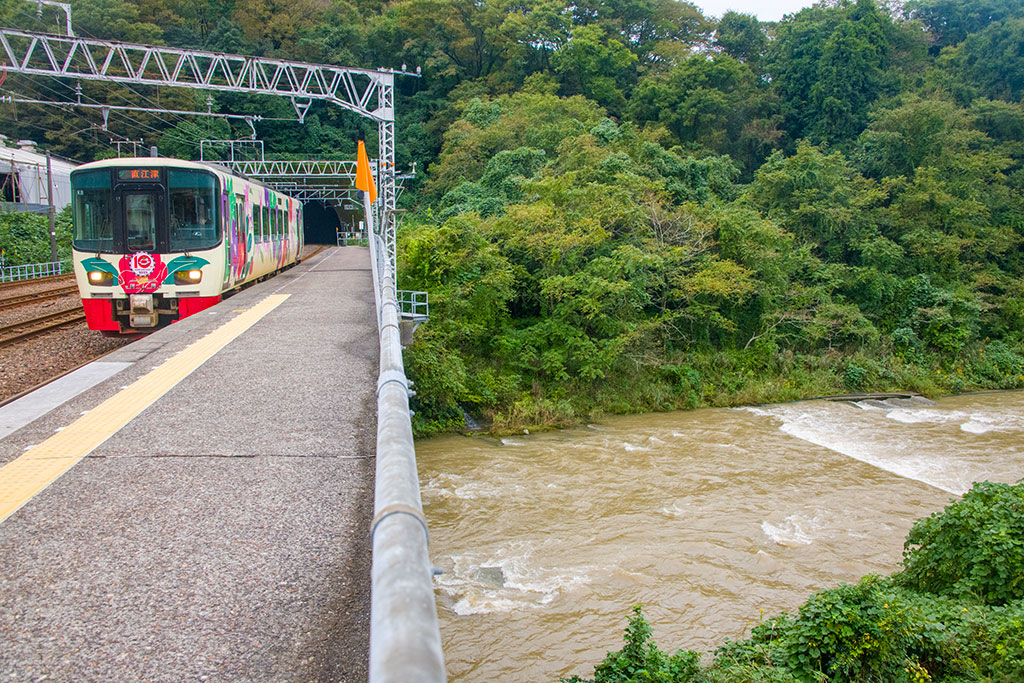 南伊東駅にて、鉄道むすめHM掲出「キンメ電車」